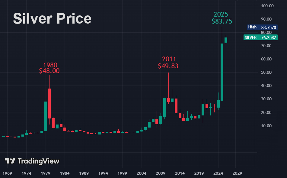 In the old Lone Ranger TV shows, the Lone Ranger would say to his horse Silver, “High-O Silver Away,” and now, after decades in the doldrums, physical Silver is taking off to the moon.
